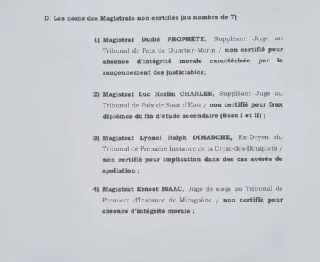 5-Magistrat Gesner Morisset, Juge au Tribunal de Première Instance du Cap-Haïtien (non certifié pour rançonnement des justiciables).